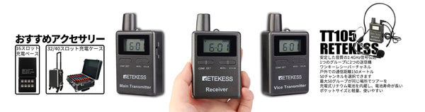 多人数に音声をワイヤレス送信できる防水・防塵仕様のワイヤレスツアーガイドシステムです。