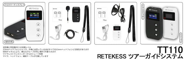ツアーガイドシステム内蔵の1500mAh充電式リチウムバッテリー、トランスミッターは12時間使用可能、レシーバーは最大18時間、充電時間を短縮します。
