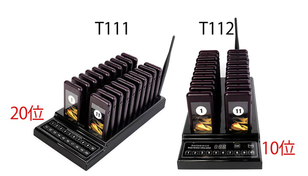 これは、Retekess T111 ページング システムのポケットベル ID は 1 ~ 20 の数字のみに設定でき、ID を任意に設定できないことを意味します。 また、Retekess T112 ページング システムは、ページャーの ID を 0 ~ 999 の任意の番号に設定することをサポートしており、必要に応じて範囲内で変更できます。 小さなレストランやフード トラックを経営している場合、Retekess T111 ページング システムはあなたのビジネスに非常に適しています。 追加のポケットベルをペアリングしたり、追加のポケットベル ID を設定したりする必要はありません。キーパッド送信機のボタンはそれぞれ各ポケットベルに対応します。 電話をかける際は、自分で入力する必要はなく、各ポケベルに対応するIDを押すだけで済みます。 これにより、通話がより便利になり、時間を節約し、効率が向上します。 レストランが非常に大きく、20 台を超えるポケットベルが必要な場合、または独自のポケットベル ID を設定したい場合は、Retekess T112 ページング システムを選択できます。 ポケベルは待機時間が長いからです。 したがって、追加のポケットベルを購入し、キーパッド送信機を使用して順番に充電することができます。