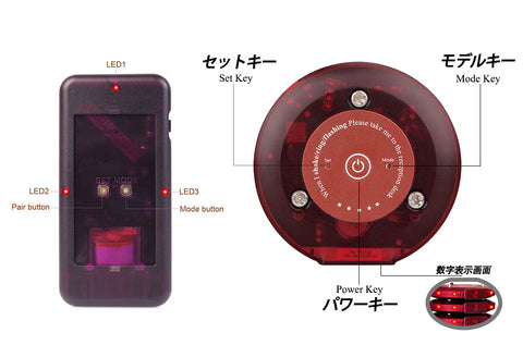 ③次に、同じ番号または異なる番号の1ページャーを、異なるキーパッド送信機に個別にペアリングできます。 (SETボタンを短く押すと、LED1インジケーターがオンになり、キーパッドの数字+ CALLボタンを押します。レシーバーが信号を受信し、LED1インジケーターがオフになります。ペアリングは成功します。レシーバーが信号を受信しない場合は10秒後にペアリングステータスが自動的に終了します。ペアリング状態に入るには、もう一度SETボタンを短く押す必要があります)。