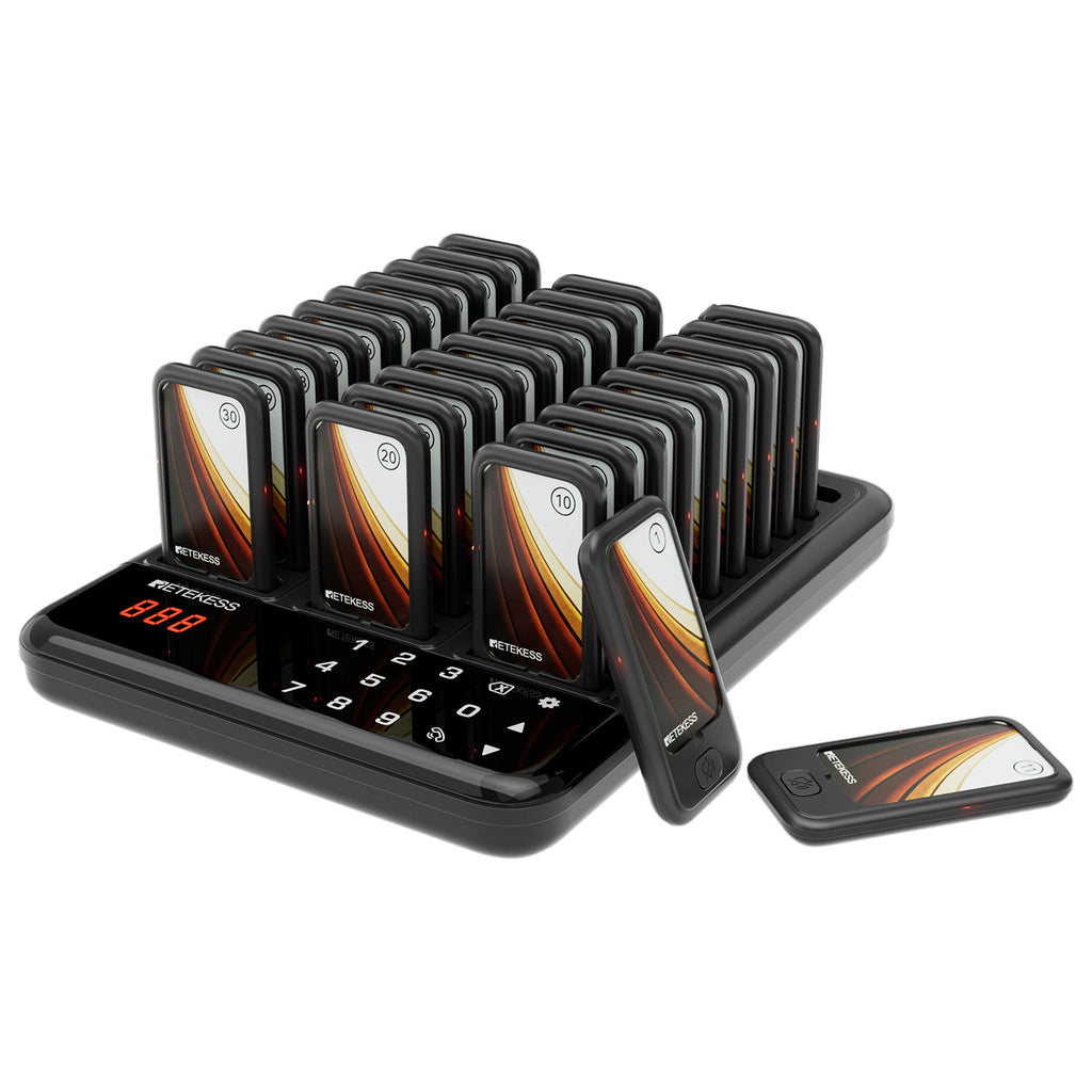 強化された耐久性:ワイヤレス呼び出しページャシステムは、耐傷性に優れたハイライトIMLキーボードを搭載した送信機を採用。日常的な摩耗に耐える洗練された外観を維持します。