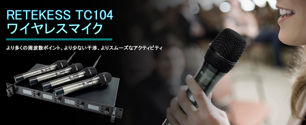 TC104 ワイヤレスマイクには複数のチャンネルを備えており、干渉が少ないため、イベントがよりスムーズになります。