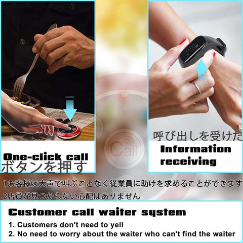 IPX7ライフ防水; 腕時計受信機の防水レベルは、偶発的な水しぶきに耐えることができます。 手洗い/野菜洗い/ジュースのしぶきなど、レストランスタッフの毎日の防水ニーズに対応