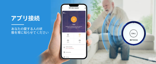 APPリモート監視。 TH011 ワイヤレス呼び出しシステムは、モバイル APP にリアルタイムの更新情報を送信できるため、家族の状態を常に把握し、迅速に対応して最善のケアを提供できます。