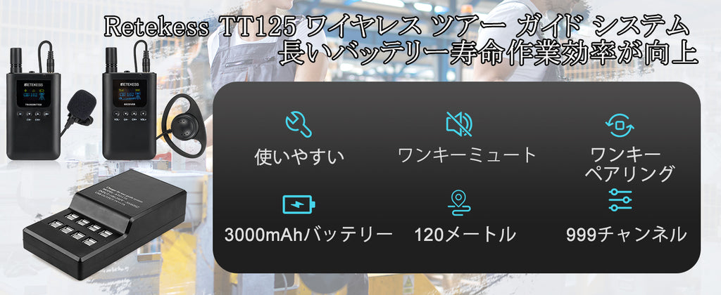 TT125無線ガイドシステム、世界中で広く使用できる 2.4GHz グローバル チャネルで動作します。 WIFI信号からの干渉を回避し、騒音レベルが異なる環境でもクリアなサウンドを提供します。