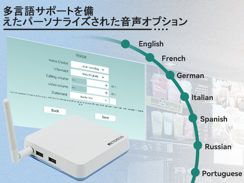 スマート キュー管理システム、キュー表示、広告、映画再生が可能、パーソナライズされた音声ブロードキャスト、インターフェース設定をサポートします。