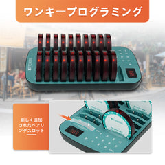 最大 998 のポケットベル: 送信機は最大 998 個のポケベルで動作できるため、ビジネスの拡大に応じて最大 998 個のフード ポケベル ブザーを追加できます。